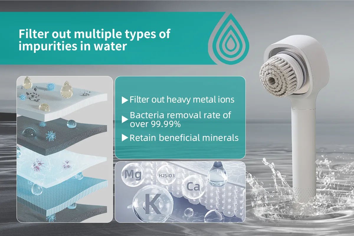Produktmerkmale: 1,15 Stufen Filtration 2. Einfache Installation 3. Weiches Duscherlebnis 4. Pflegende Dusche 5. Hautpflege und Haarpflege Produktvorteile: 1. CE-Zertifizierung 2. Eine vollständige Produktpalette in verschiedenen Materialien und Ausf...